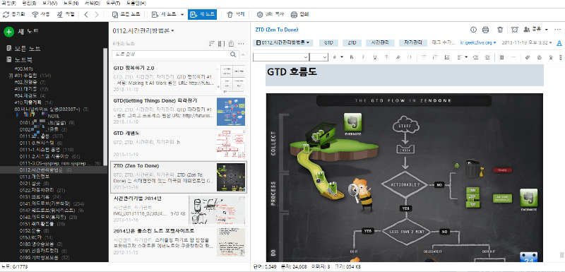 - [원노트] [에버노트] 를 사용하던 시점에는 시간 날때 마다 관련성 있는 노트들을 모아서 [합치기] 를 통해서 노트의 총 갯수를 줄여 나갔다.