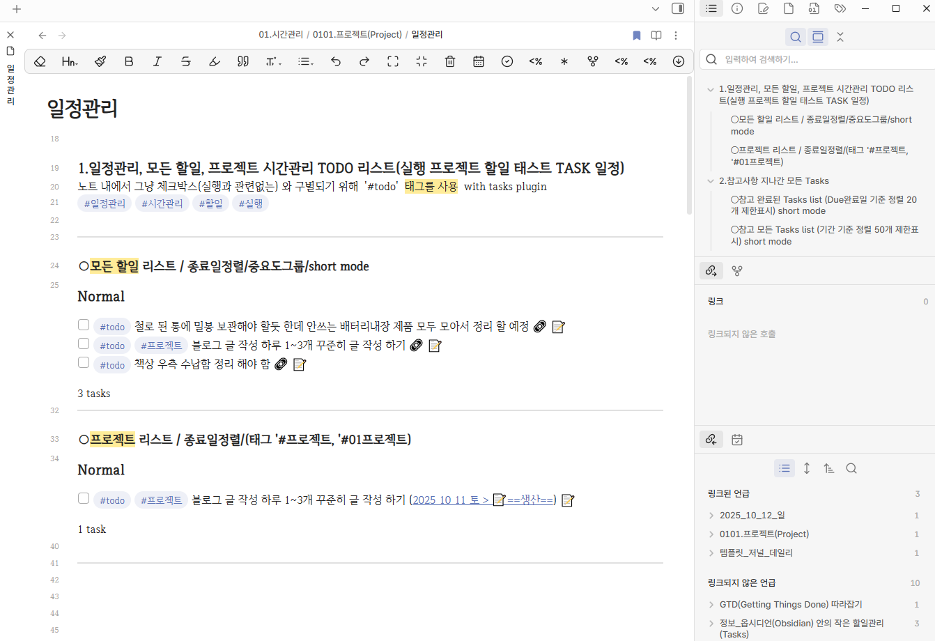 [일정관리] 노트에서 이곳 저곳 각 노트에서 만들어진 TASK 할일 들을 한곳에서 모아서 처리하고 있고