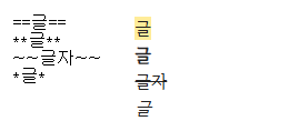 - 하이라이트(형광펜) : ==글==