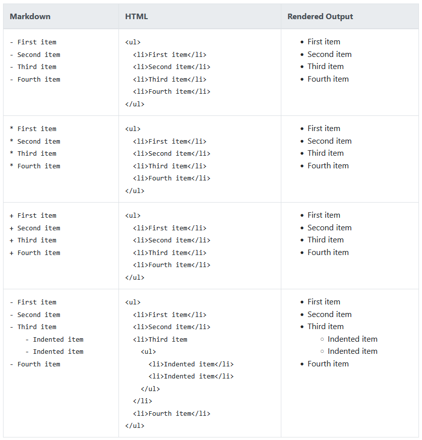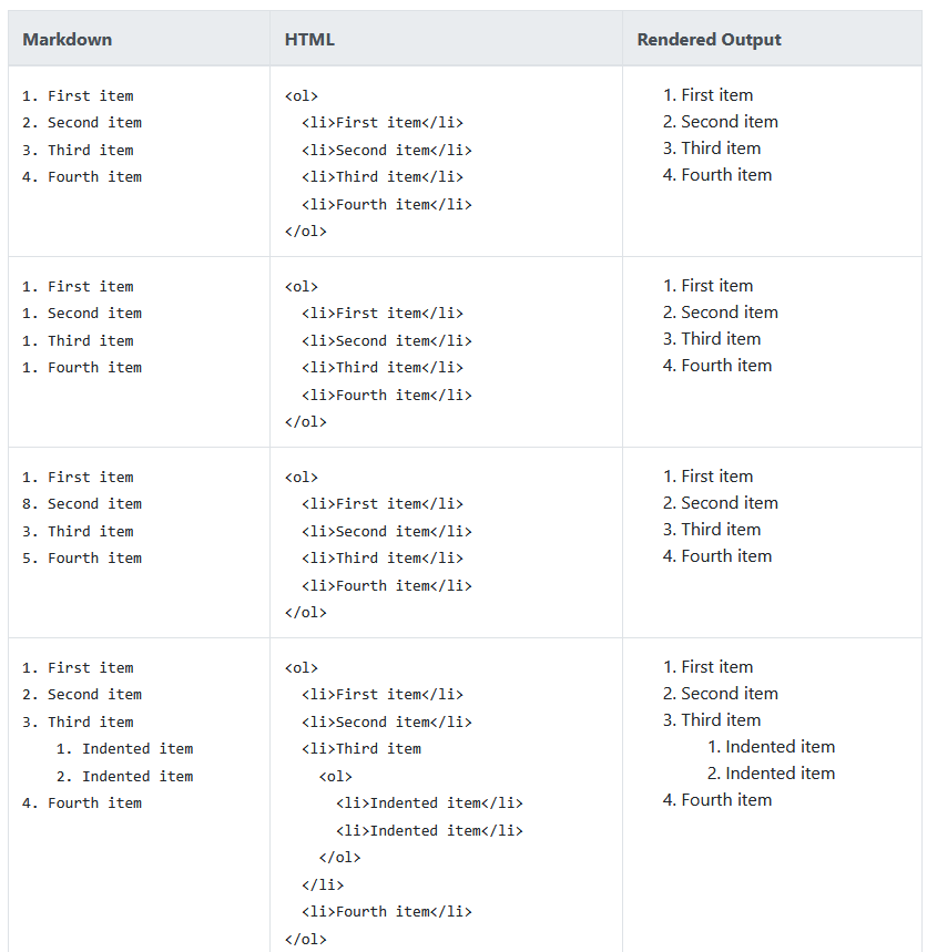 - 목록 (넘버링 형태와 비넘버링 형태) : 깊이는 키보드의 TAP으로 들여쓰기 쉬프트+탭으로 내어쓰기