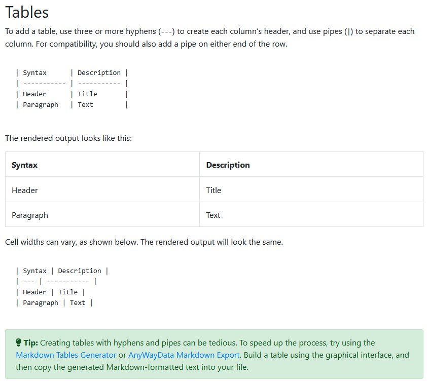 - 이를 해결하기 위해 여러 플러그인이 있지만 그냥 표를 최소한으로 사용하고 있다.