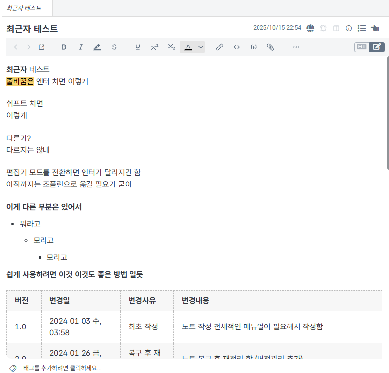 하나는일반편집기(마크다운문법이 랜더링 되어 표현되는) 일반적인 편집기 형식